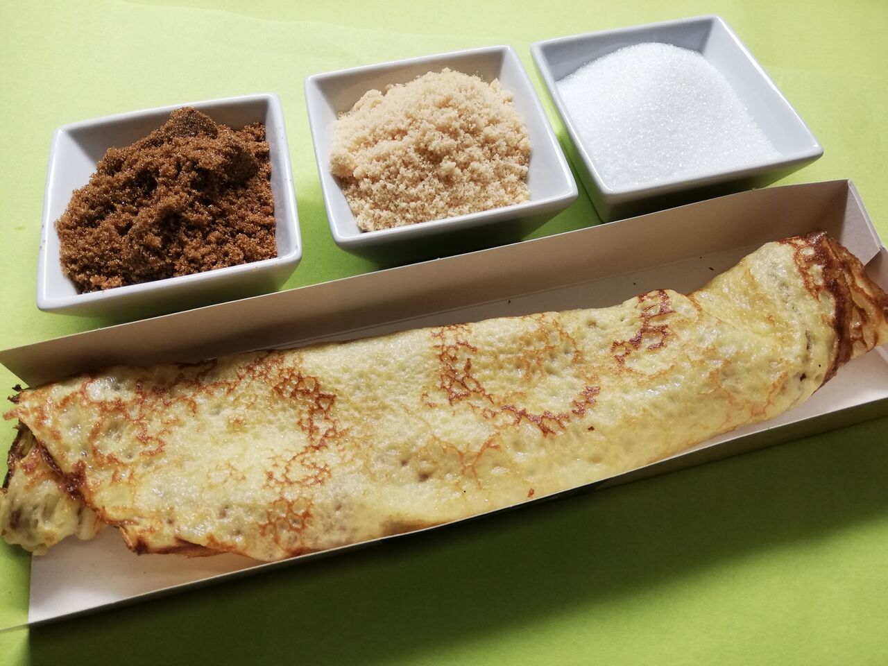 Vers gebakken pannenkoek. Ook hartige versies zijn mogelijk in overleg.